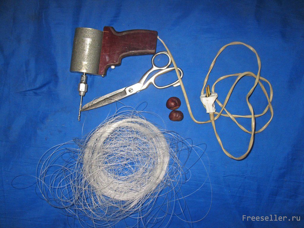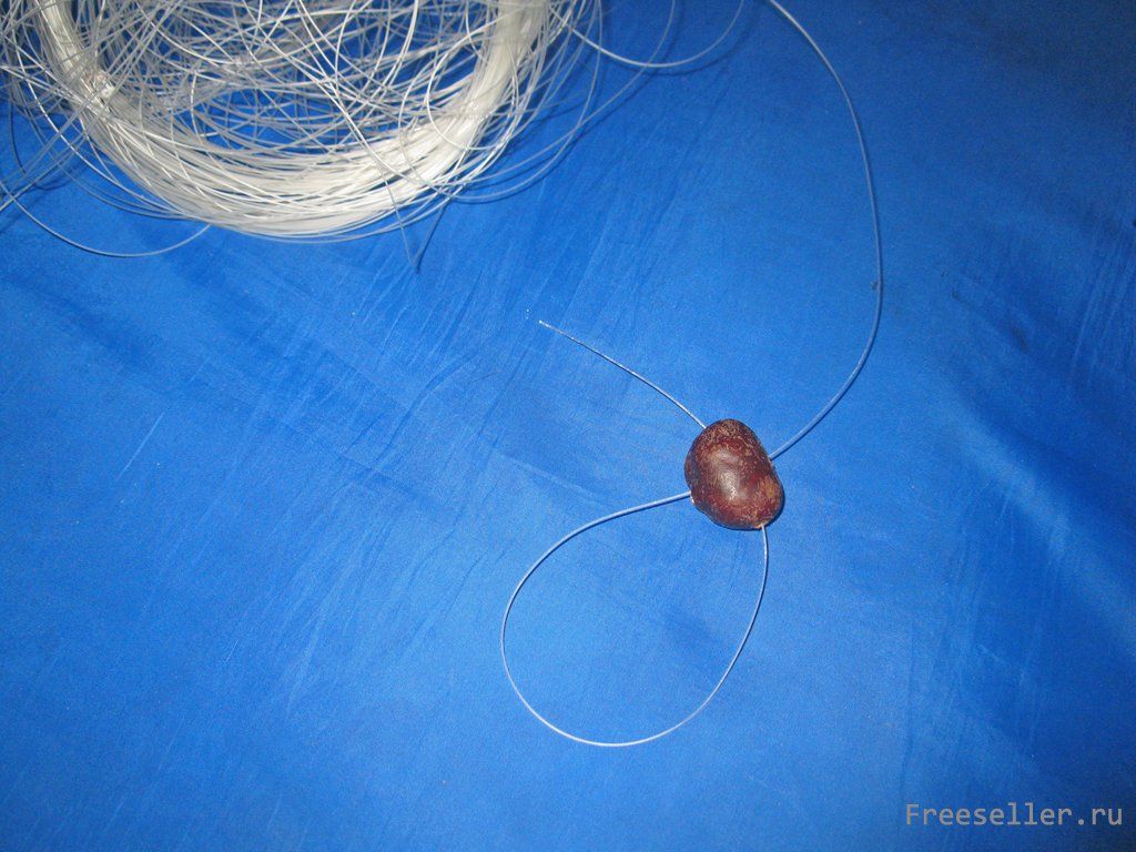 2) Разрезаем леску на равные отрезки с расчетом на ширину и длину коврика и нанизываем на них каштаны.