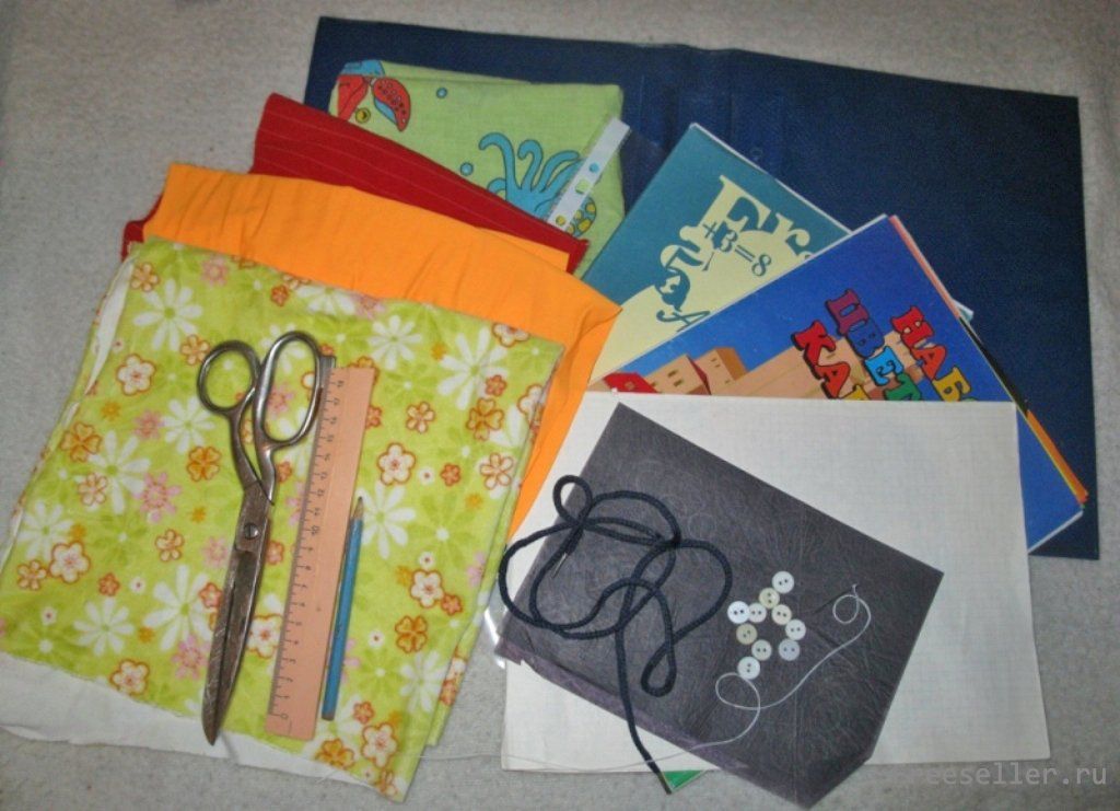 5 - сострачиваем вместе с трех сторон (верх, низ, бок) с изнанки по 2 кусочка-листка книги в правильной числовой последовательности, выворачиваем на лицо и вставляем вовнутрь лист плотного картона;