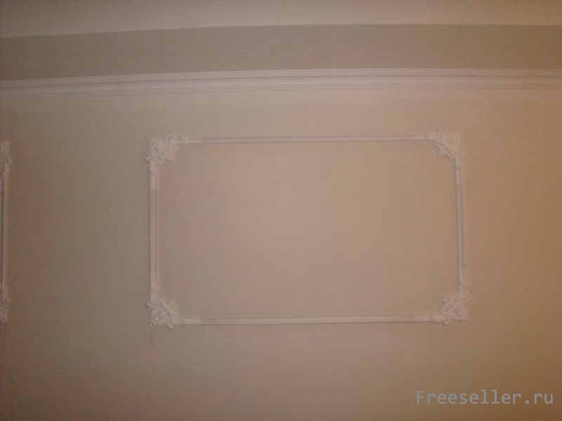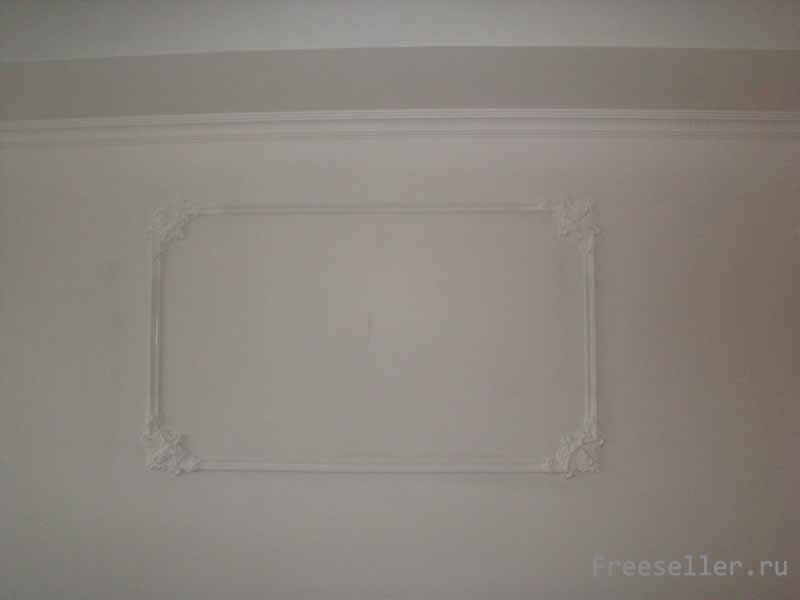 После высыхания клея, красим стену и декоративные элементы из полиуретана.