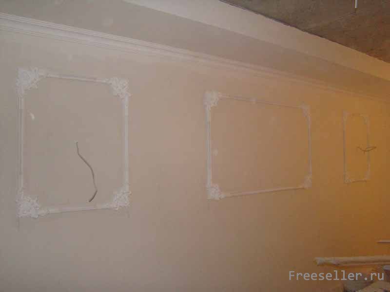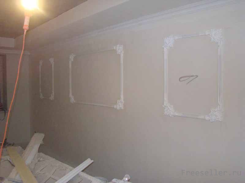 2) Приступаем к наклеиванию молдингов и угловых элементов.