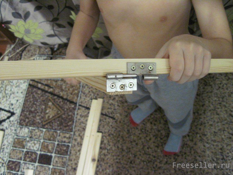 Все отверстия делались с помощью дрели и лобзика. В брусках длиной 1.5 м. и 0.87 м., было сделано нечто похожее.