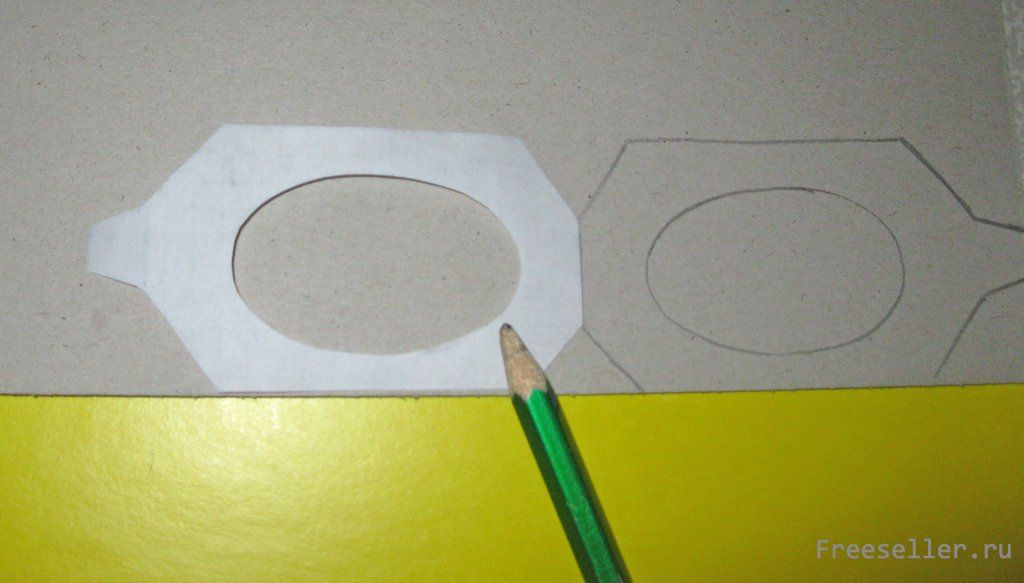 2 - вырезаем заготовку, накладываем ее на обратную сторону картона и обводим, поворачиваем заготовку по сгибу и делаем симметрично 2 сторону;