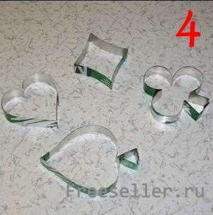 4.Загибаем так как вам будет угодно в виде сердечка, пики, буби, крести и т.д.( Скрепление происходит в виде загибов кончиков жестяного материала. если у вас не получается скрепить то можно склеить супер-клеем)