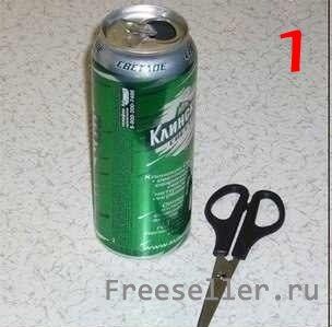 1. Берем жестяную банку из под чего либо (пиво, газировка) и канцелярские ножницы.