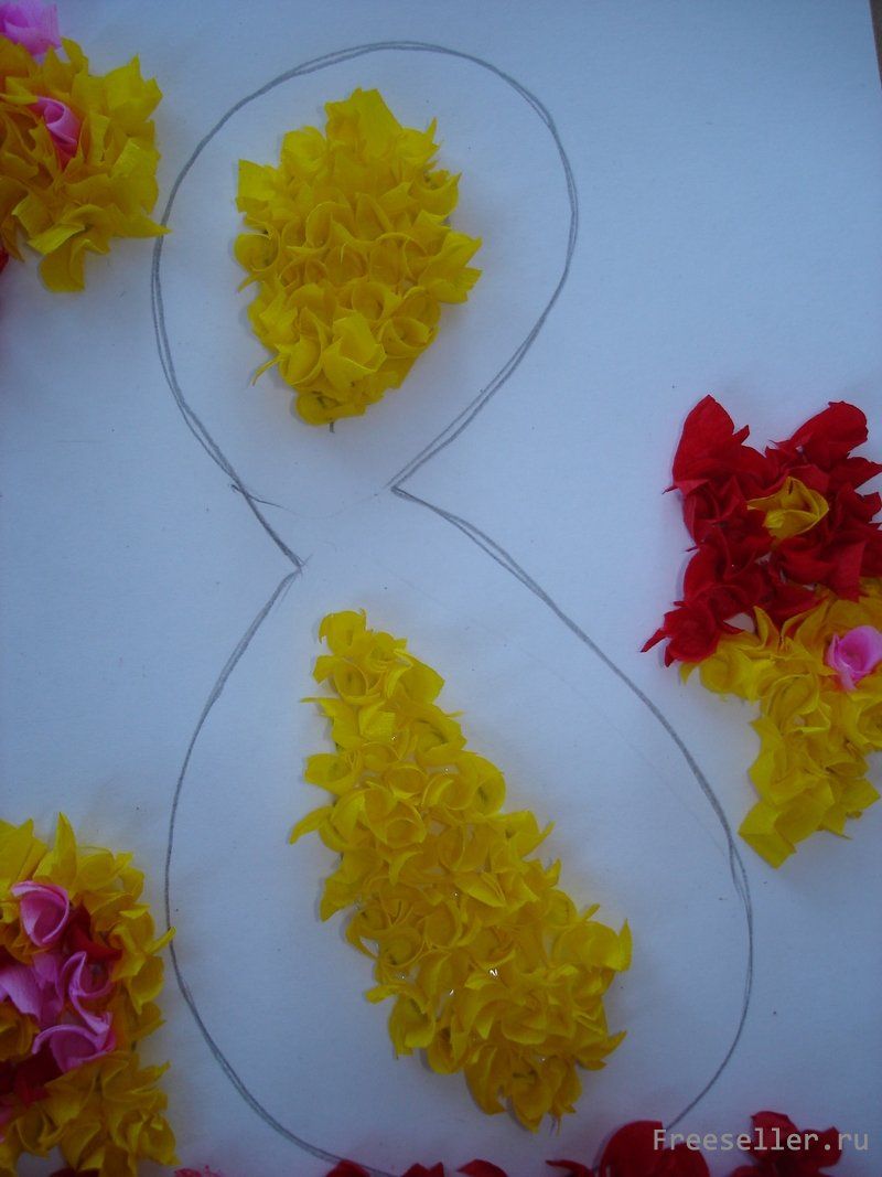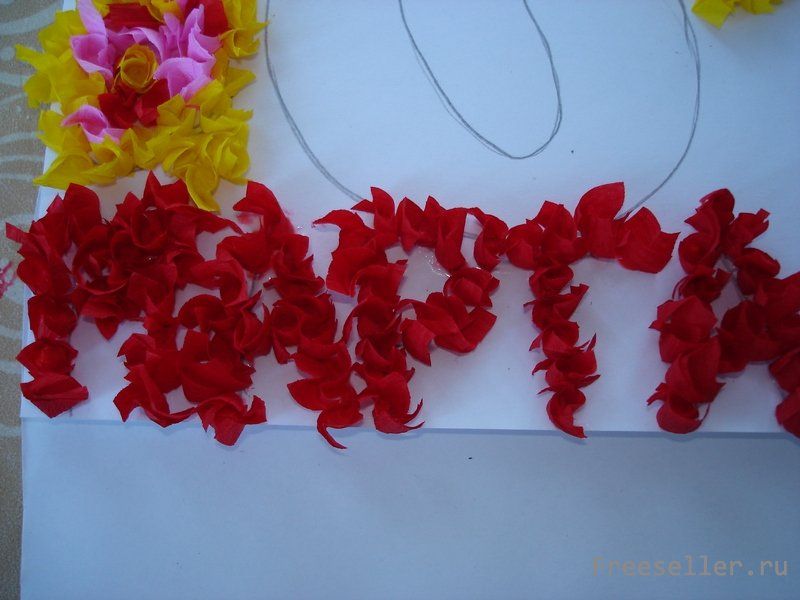 Шаг 5. Таким же образом приклеиваем квадратики по контуру надписи «8 марта».