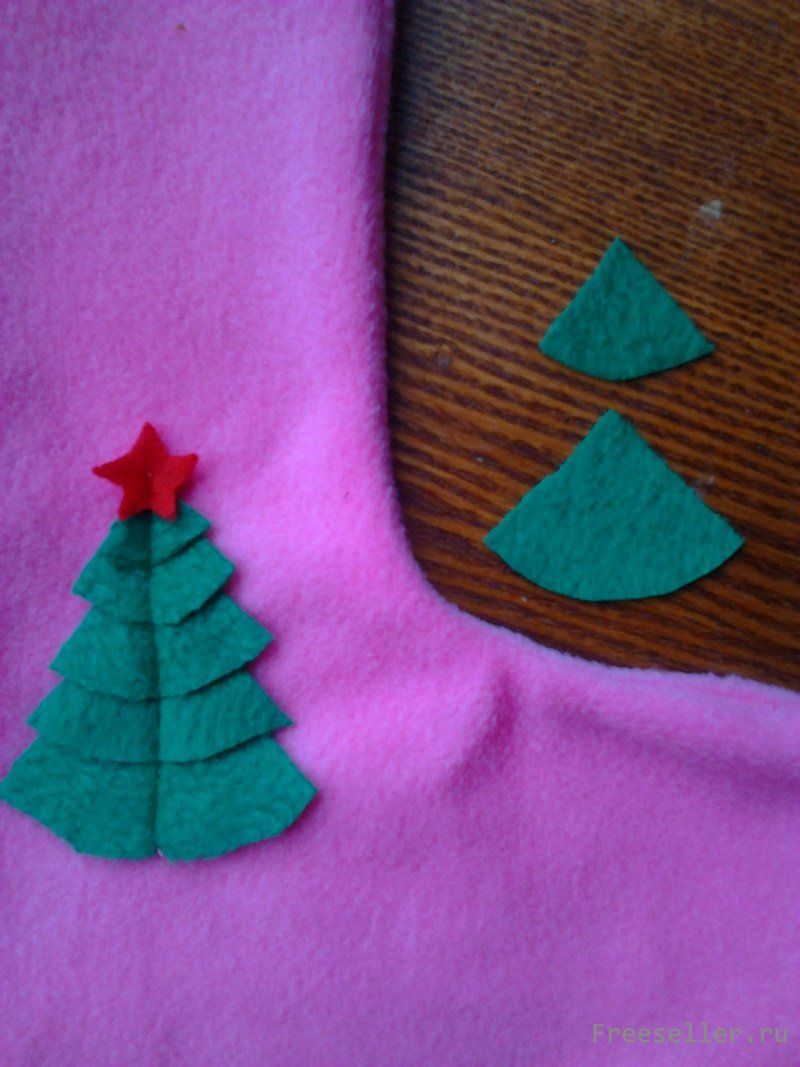 Нужно вырезать несколько таких треугольников как показано на фото. И способом налаживания друг на друга фиксируем на сапожке в понравившемся месте. Таким же способом вырезаем и крепим звёздочку на ёлку. Сшиваем наш сапожек вручную или машинкой. На фото видно точно как сшивать. Швы должны быть только изнутри, чтоб лицевая сторона была красивая. Далее пришиваем белую опушку на наш сапожек. Так же во время пришивания опушки не забываем пришить ленточку, за которую будем подвешивать наш сапожек.