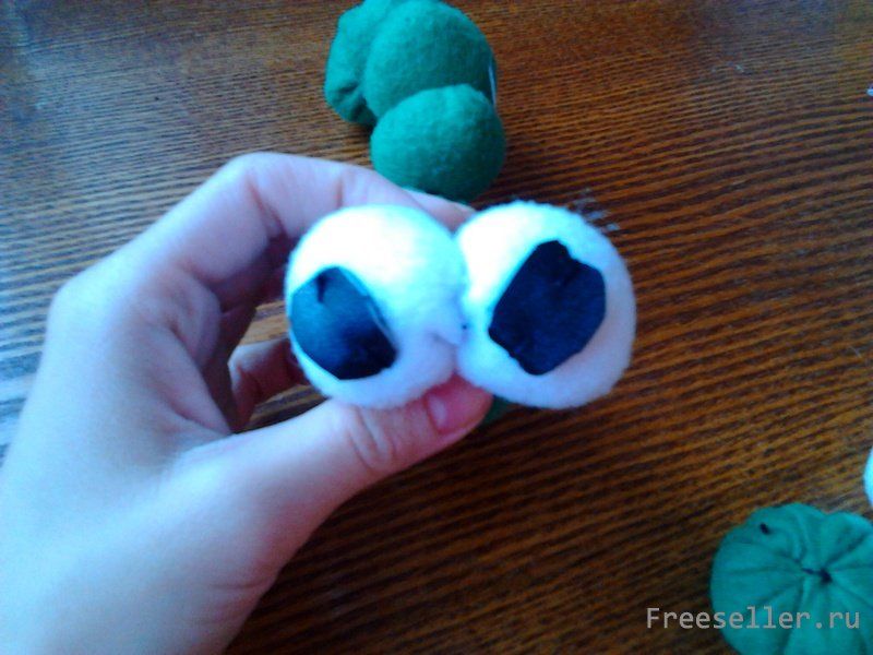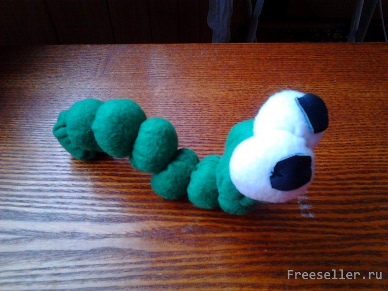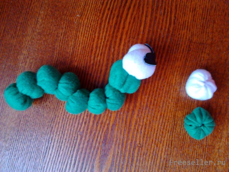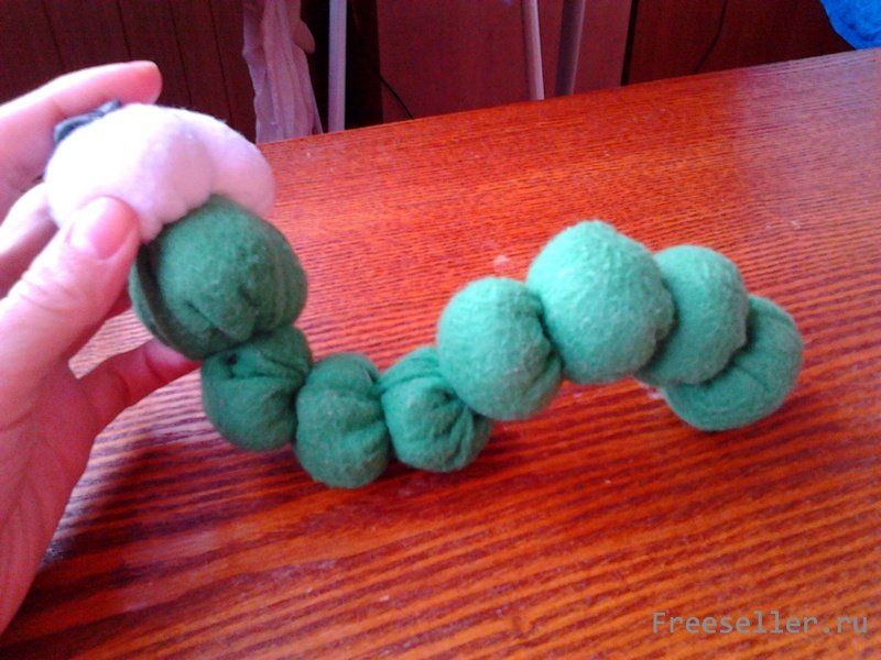 Сшиваем нашу гусеницу, пришивая шарик за шариком. И вот что у нас получилось.