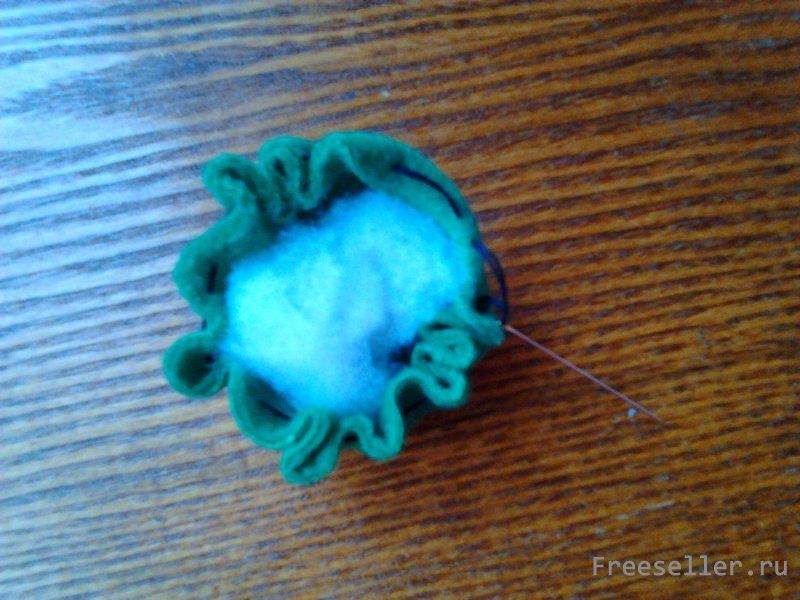 Наполняем синтепоном и зашиваем края круга должны оказаться внутри получившегося шарика.