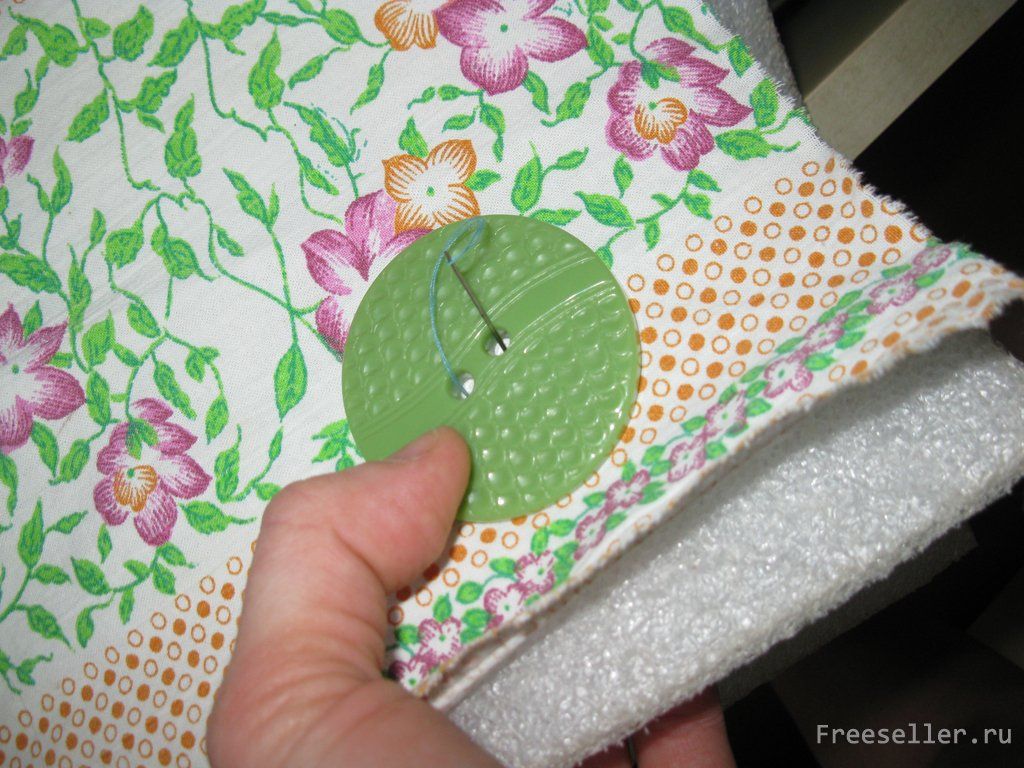 1 - вырезаем из утеплителя полосу (22x116 см) (размер может быть и другим), оборачиваем ее куском ткани, оставляя немного напуск для подворота, и нашиваем на них пуговицы (желательно разные по ширине, высоте и фактуре) в хаотичном порядке (главное - несимметрично!!! - для лучшего эффекта при массаже);
