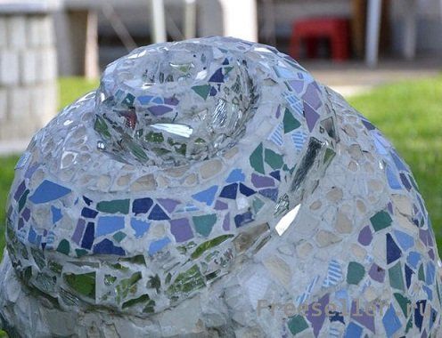 Когда мозаика закрепится, затираем поверхность раствором, заполняя пустоты до уровня мозаики. Устанавливаем готовую фигурку.