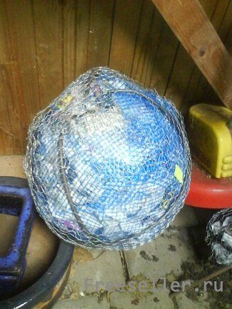 Для начала возьмем куски сетки и свернем их в виде трубки, потом набьем внутрь старых журналов и газет поплотнее.