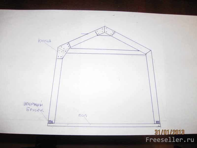 Верхняя и нижняя створки изготовлены из бруска 100х45 соединённые в шип на клею с постановкой кницы аналогичной стропильной.