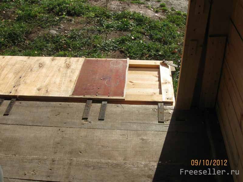 Сначала на петли ставится нижняя створка затем через прокладку 10мм на неё устанавливается верхняя створка и на ней устанавливаются поворотные петли. Все петли изготовлены из пол дюймовой трубы с приваренными полосами для крепления.