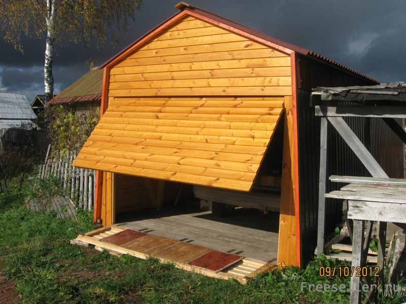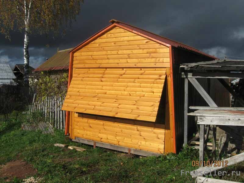 Вход в гараж для моего удобства сделан со стороны огорода обшивка вагонкой с последующей пропиткой (французская лазурь цвет - скандинавская сосна) рекомендую.