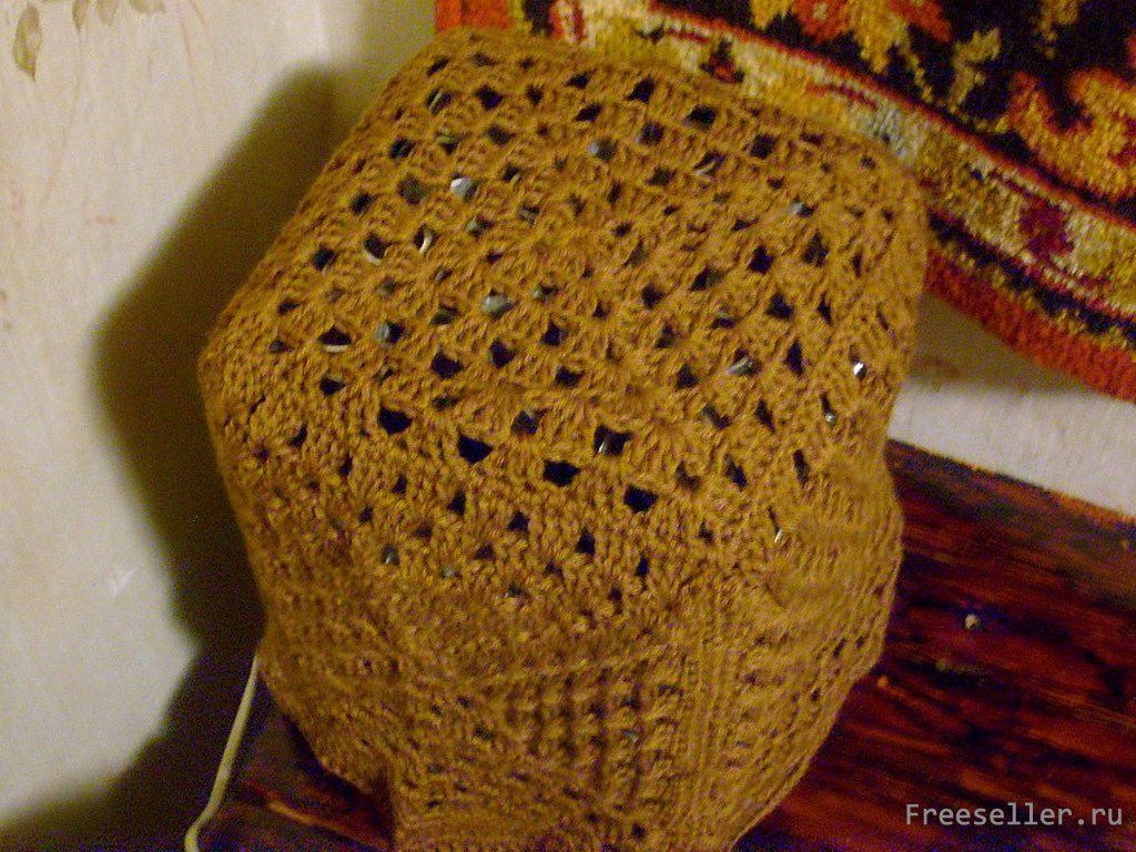 Закрепляем и обрезаем нить. Изделие выворачиваем на лицевую сторону. Растягиваем швы. Надеваем его на наш светильник. Читать при таком свете тяжело, но ведь наш вязаный "абажур" тем и хорош, что легко снимается и надевается. Кроме того, его можно часто стирать, так что, "пылесборником" на вашем ночном столике он не станет.