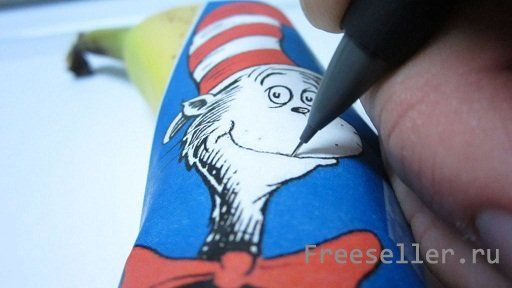 Для того, чтобы делать рисунки на кожуре бананов понадобится автоматический карандаш, в который вместо графитного стержня вставляется игла, банан, рисунок, который нужно нанести, и скотч для закрепления рисунка.