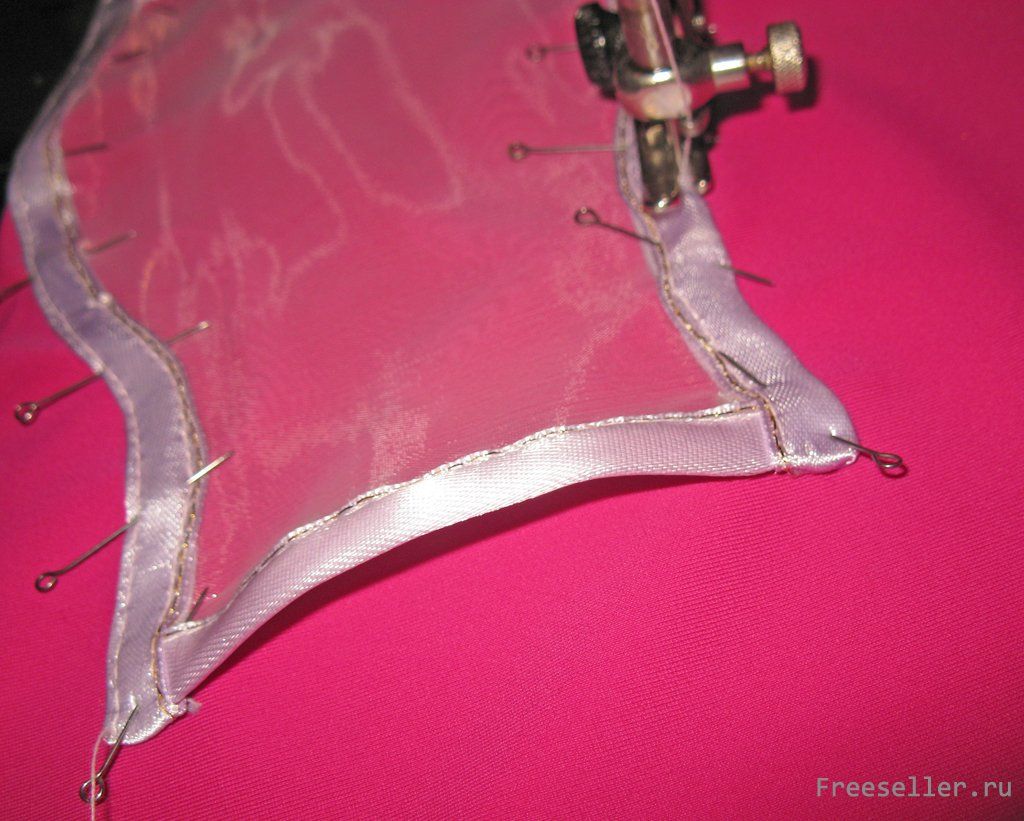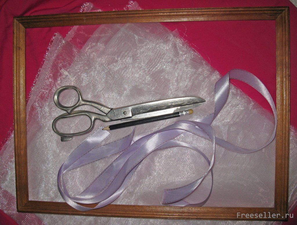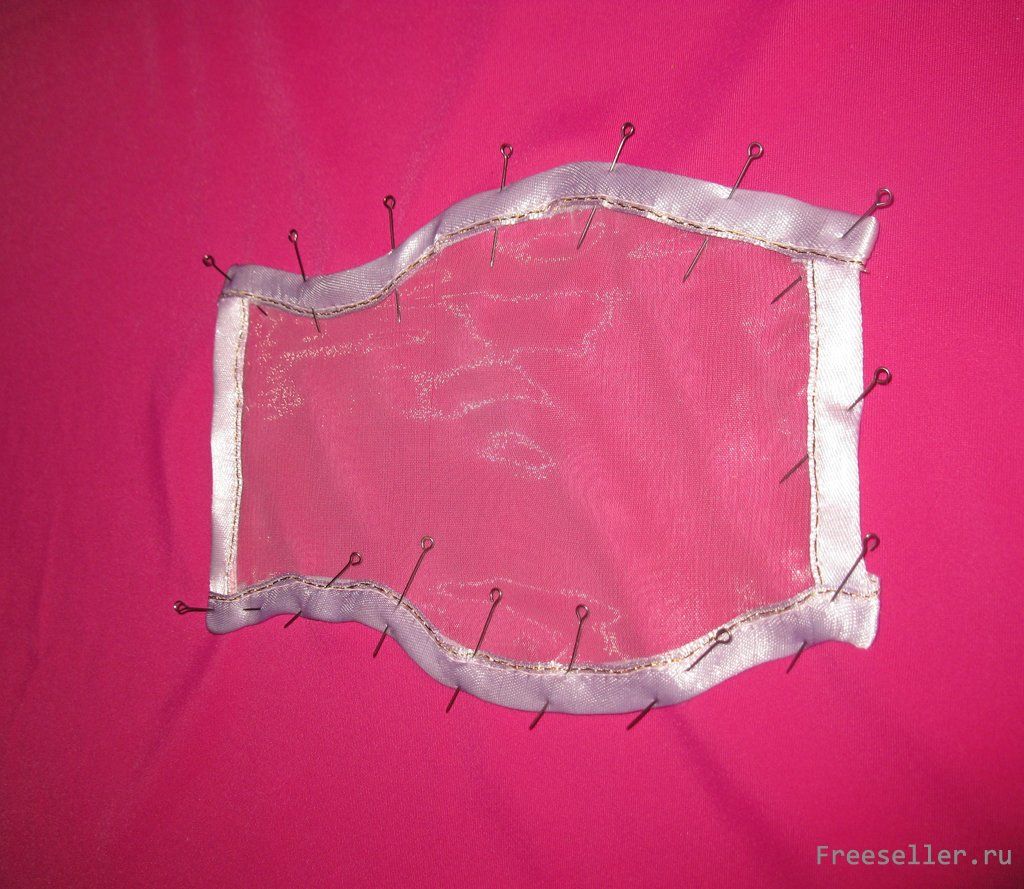 2 - прикладываем заготовку к органзе и вырезаем (материал имеет блестящую фактуру и хорошо будет имитировать стекло) - ваза;