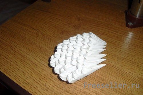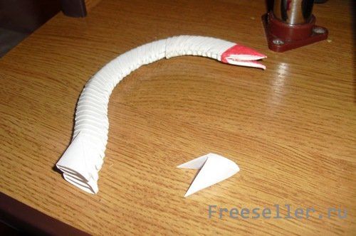 Для создания Лебедя вам понадобится создать треугольные модули (460 штук), можете все не делать сразу, а продвигаться по мере выполнения оригами.