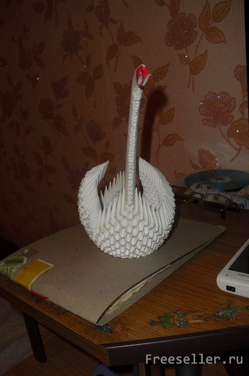 Для создания объёмного оригами Лебедя вам потребуется запастись не только компьютерной бумагой, но и невероятным терпение, так как для Лебедя вам понадобится создать четыреста шестьдесят белых и одну красную бумажную модель, которые соединяются друг с другом, без использования клея и других подручных материалов.