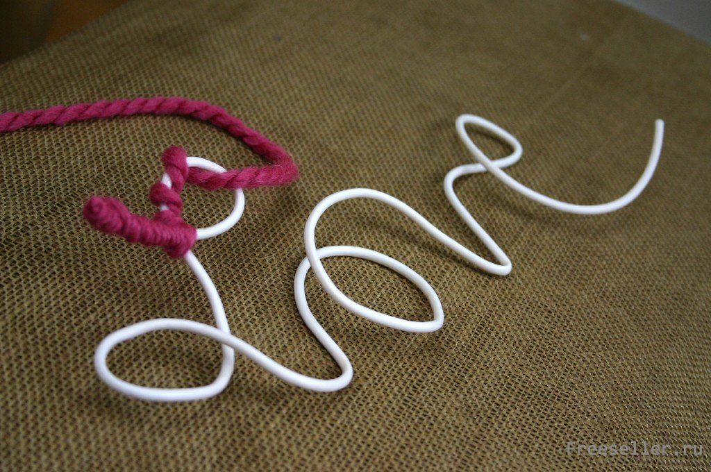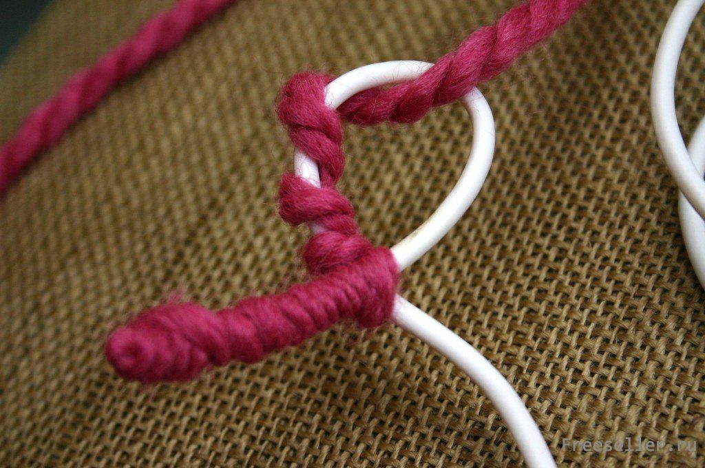 Обмотайте провод пряжей полностью.
