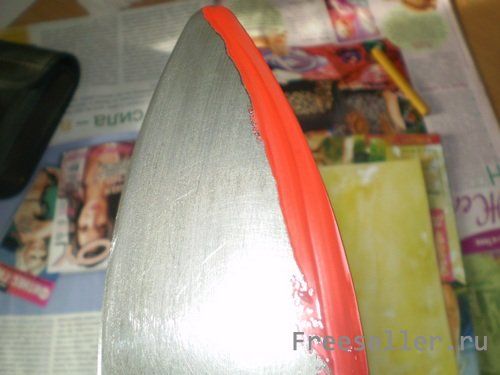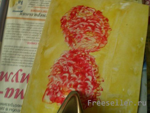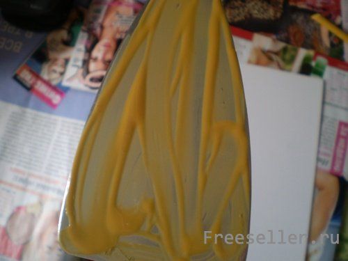 2. На разогретую поверхность утюга наносим карандаш желтого цвета и делаем фон.