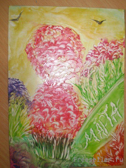 Делаем поздравительную открытка к 8 марта, рисуя ее утюгом.