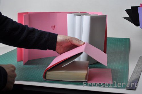 Оборачиваем книги в розовую обложку поверх белой обложки