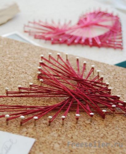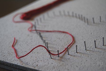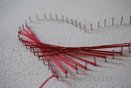 Нарисуйте на дощечке карандашом сердце. Вбейте гвозди по контуру сердца.