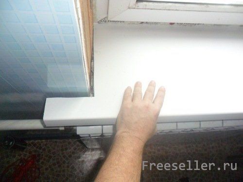 Перед самой установкой убирают старый подоконник, но его нет, так что не возимся с этим. Ставим подоконник по уровню и ставим подложки на его край.