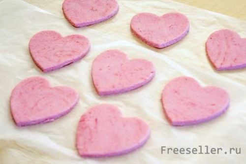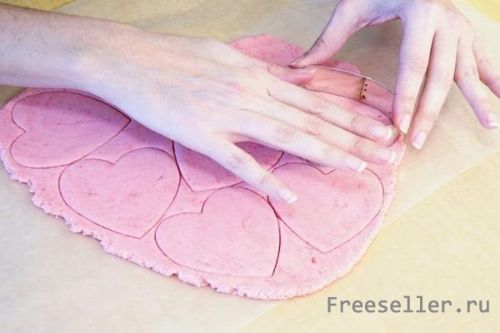 Берем формочку «сердце» и вырезаем печенье.