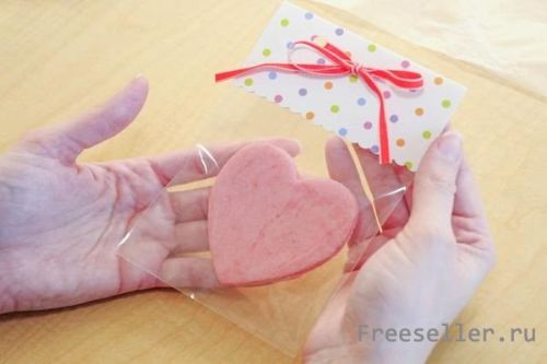 Берем сердце и кладем в упаковочный пакет.