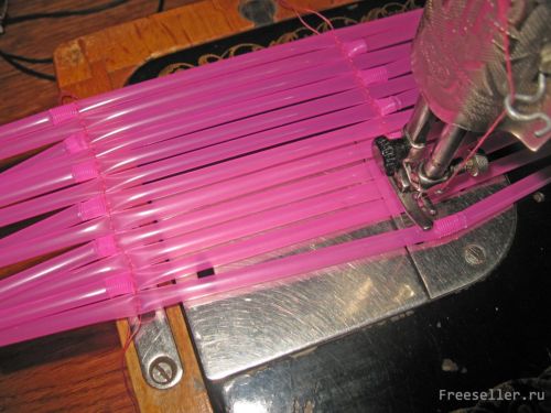 1) Собираем 12 соломинок вместе (гармошка на трубочках через ряд чередуется) и прострачиваем по линии начала гармошки с 2 сторон;