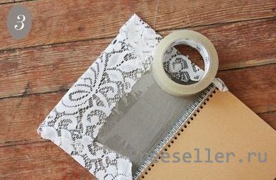 Отрежьте кусок кружева немного большего размера, чем обложка Вашего блокнота.