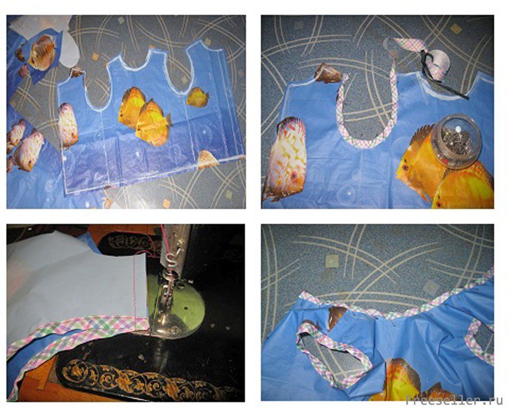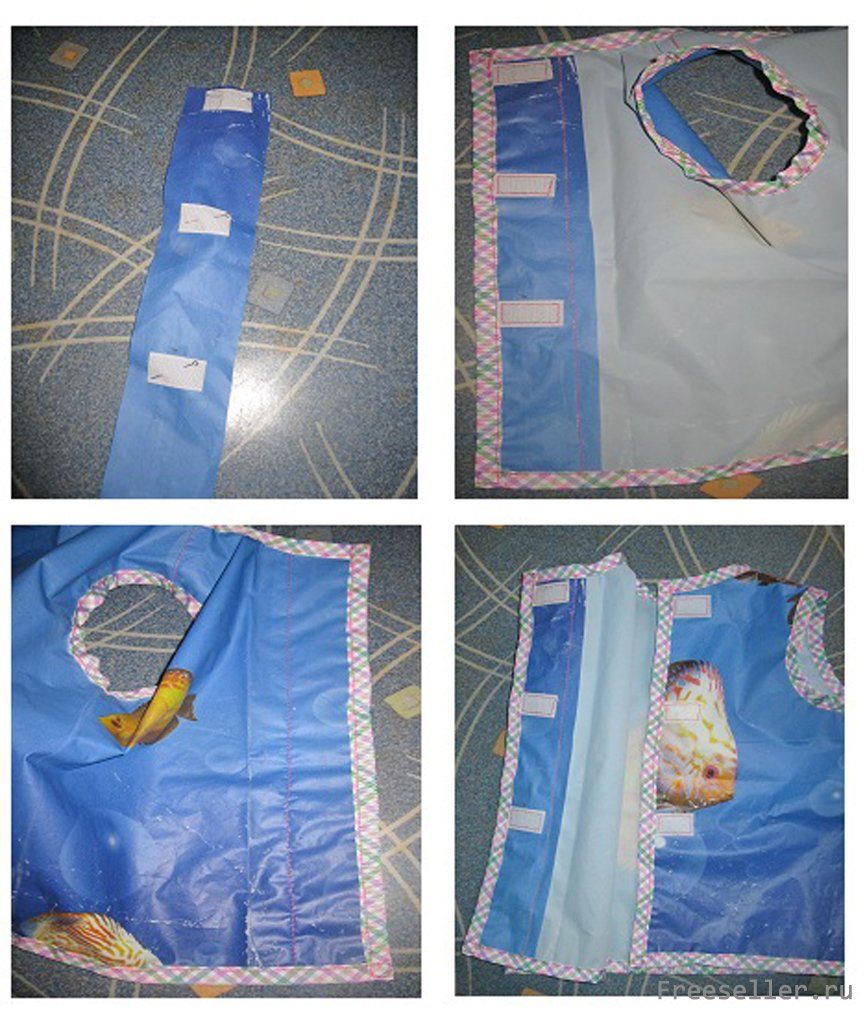 Делаем ребенку фартук для рисования из потертой занавески для душа.