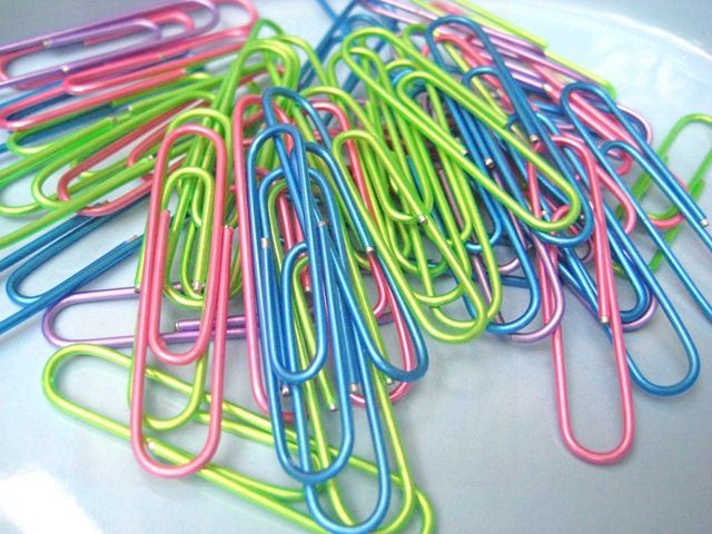 Поместите его вокруг скрепки и сшейте двойным стежком.