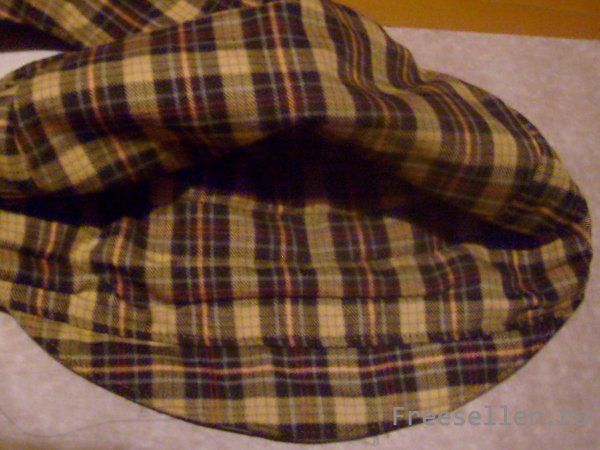 Примётываем козырёк, совместив средние линии, к подкладке. Складываем верх с подкладкой лицевыми сторонами и сшиваем, прихватывая козырёк (между ними), по всему внешнему контуру изделия. Оставляем только сантиметров десять внизу основания, чтобы бандану можно быор вывернуть. Выворачиваем изделие и вручную аккуратно сшиваем оставленный зазор потайным швом. Делаем строчку по всему внешнему контуру близко ко шву стачивания. Бандана готова.