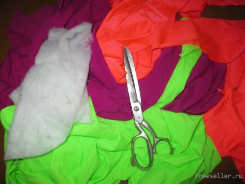 2) Прорезаем слои ткани ближе к строчке, вскрывая другие цвета;