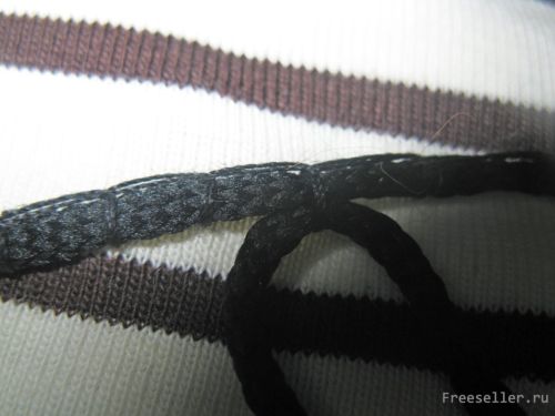2) Прихватываем и закрепляем шнуровку с помощью иголки с ниткой обычным или швом через край;
