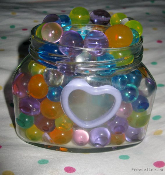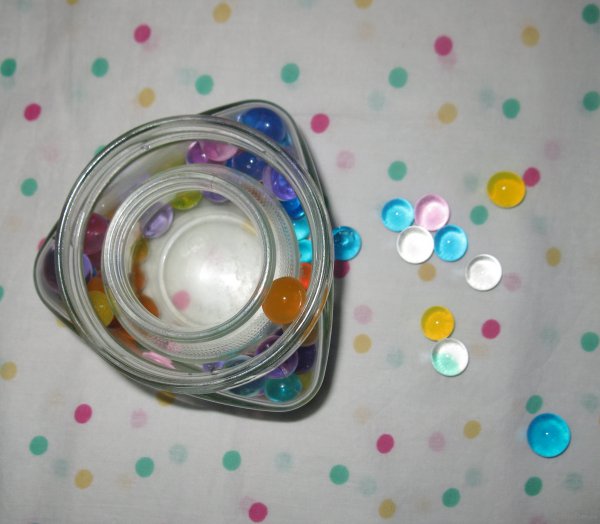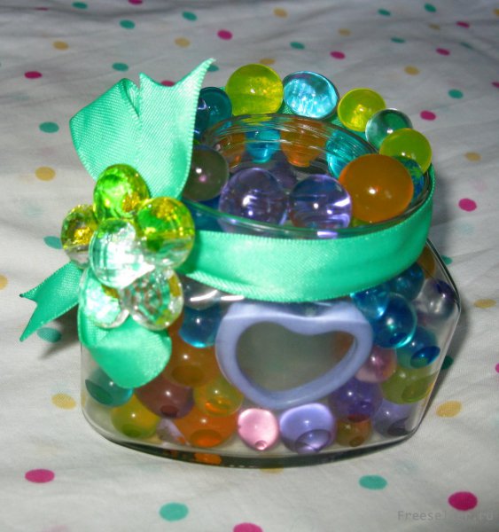 2) Равномерно распределяем водяные шарики для цветов в пространстве между боками банок;