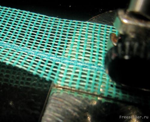 2) прострачиваем на швейной машинке ряды из ниток разных цветов, а затем фигуры (зигзаги, волны, кольца, треугольники и т.д. - все, что угодно) - сетка - удобный материал для растрочки без разметки;