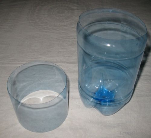 1) надрезаем пластиковые бутылки: у одной срезаем верх до бортика, у другой - верх и низ - форма широкого кольца;