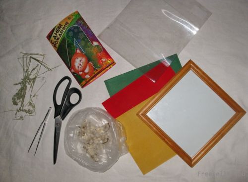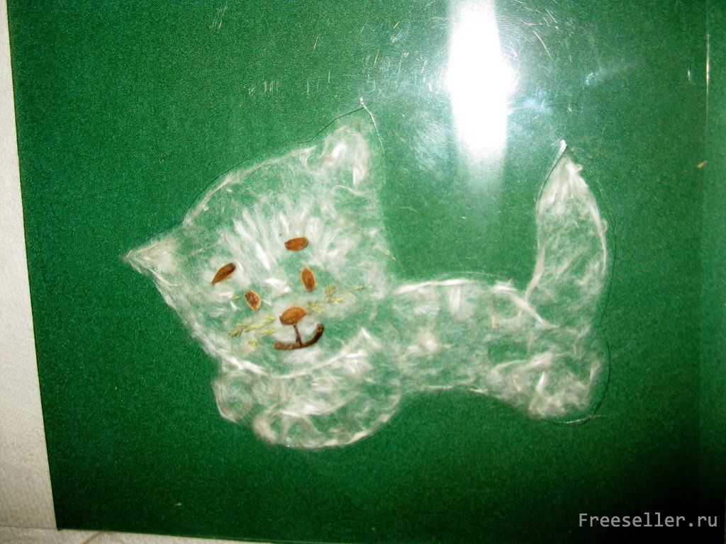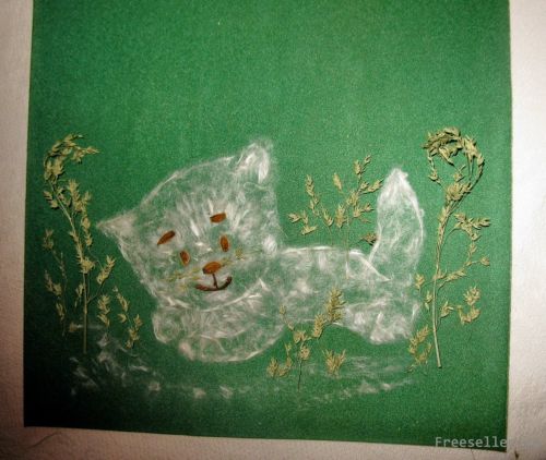 Материалы тоже могут быть самые неординарные. Например, тополиный пух - легкий и мягкий как вата на ощупь, сама нежность как тепло материнской любви, прекрасно выкладывается на бархатной бумаге в забавную картинку для вашего ребенка.