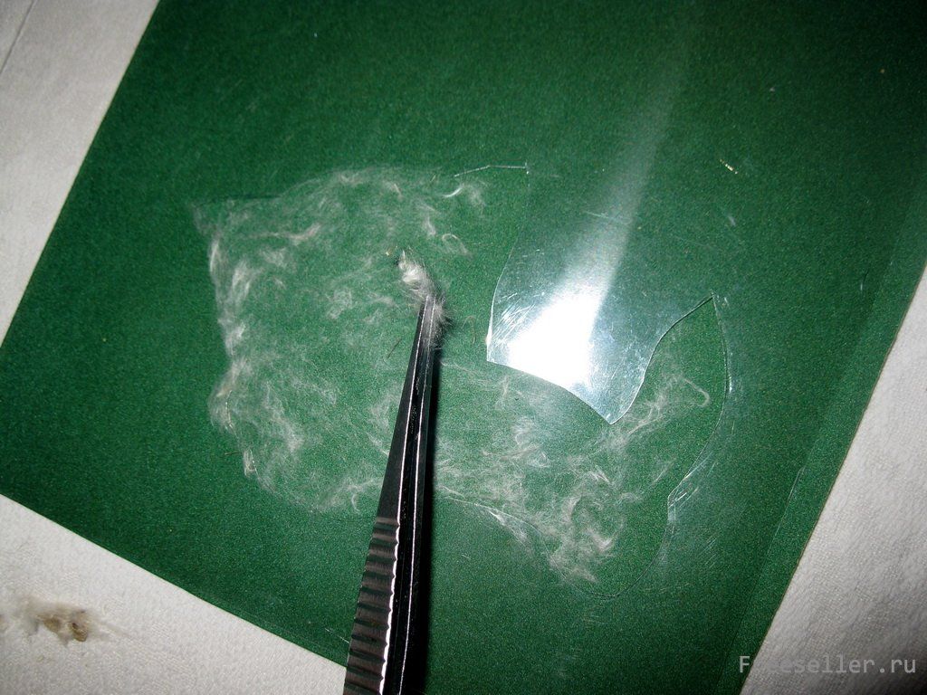 4) с помощью пинцета и пальцев рук выкладываем тополиный пух внутри трафарета - легким прибиванием, прикладыванием, растягиванием, приглаживанием пуха по контуру (больше сбить) и всей картинке (растянуть и пригладить тонким слоем);
