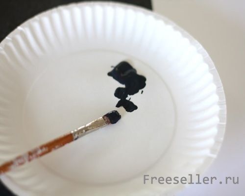 Для начала необходимо обмакнуть кисточку в черной краске.
