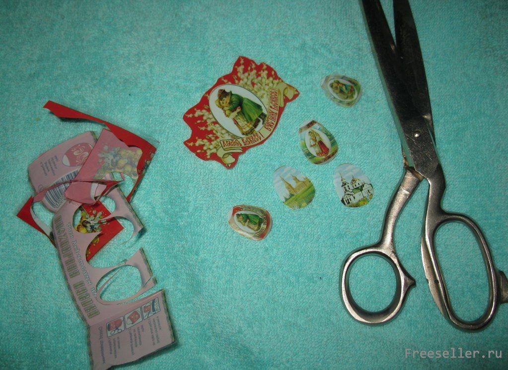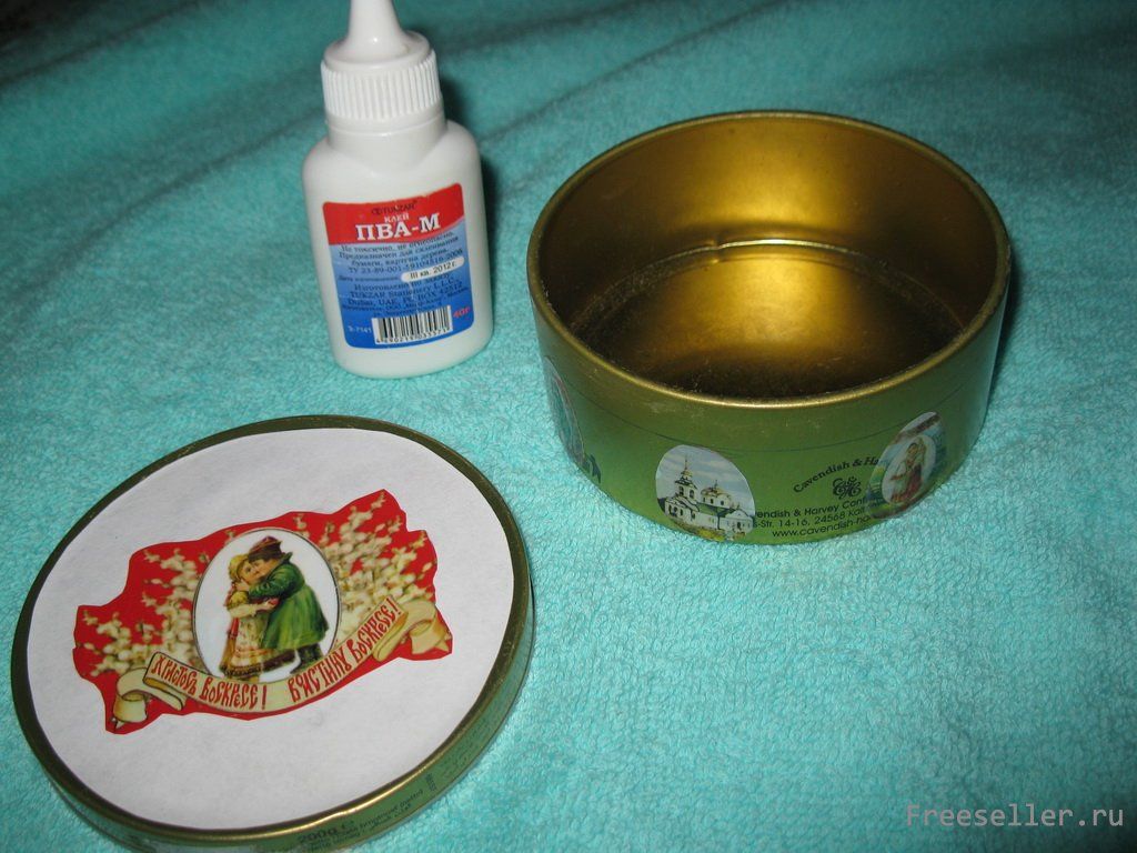 2) если коробочка имеет яркую цветную раскраску, то обклеиваем ее белой бумагой, затем добавляем вырезанные элементы на крышку и стенки коробки;