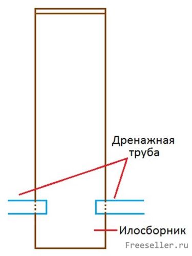 По технологии на каждом повороте системы вокруг дома, угол которого составляет 90 градусов необходимо разместить ревизионный колодец. Но, по большому счету размещение колодцев на каждом втором таком повороте не влияет на эффективность работы дренажа фундамента. Последний из колодцев мы располагаем в самой низшей точке системы. При монтаже ревизионных колодцев нужно предусмотреть устройство в каждом из них сборника для ила, для этого мы просто оставляем свободным расстояние от входящей трубы до основания колодца. Глубина илосборника должна составлять 15-20 сантиметров. Это позволит в дальнейшем без труда удалять скопившийся ил при помощи дренажного насоса. Устройство дренажа фундамента дома производят с одновременным устройством ливневки. Для этого трубы обеих систем располагают в одной траншее, прокладывая их параллельно друг другу.