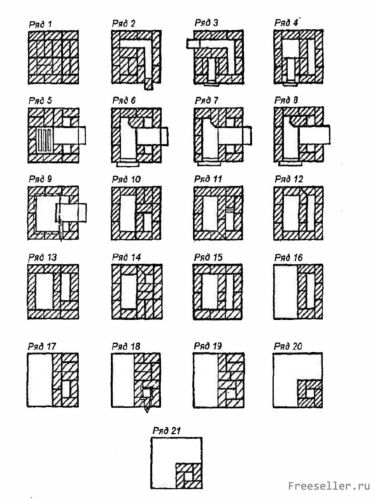 Рис.2. Порядок кладки печи каменки с нижним размещением бака для воды.