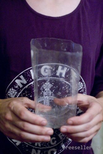 Отрезаем дно и горлышко бутылки. Формируем прямоугольник.