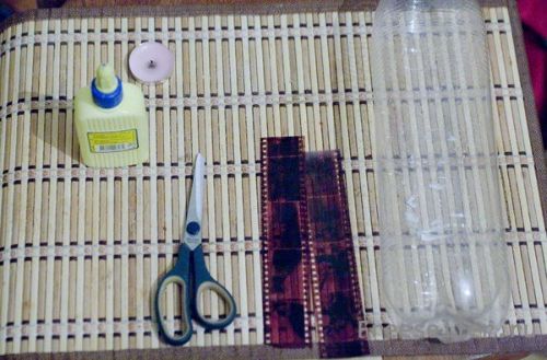 Дайте новую жизнь ненужным плёночным негативам! сделайте из них и пластиковой бутылки красивый самодельный винтажный подсвечник.