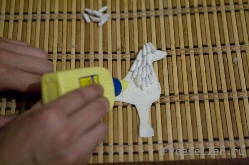 Приклеиваем вату там, где должна быть шерсть пуделя.